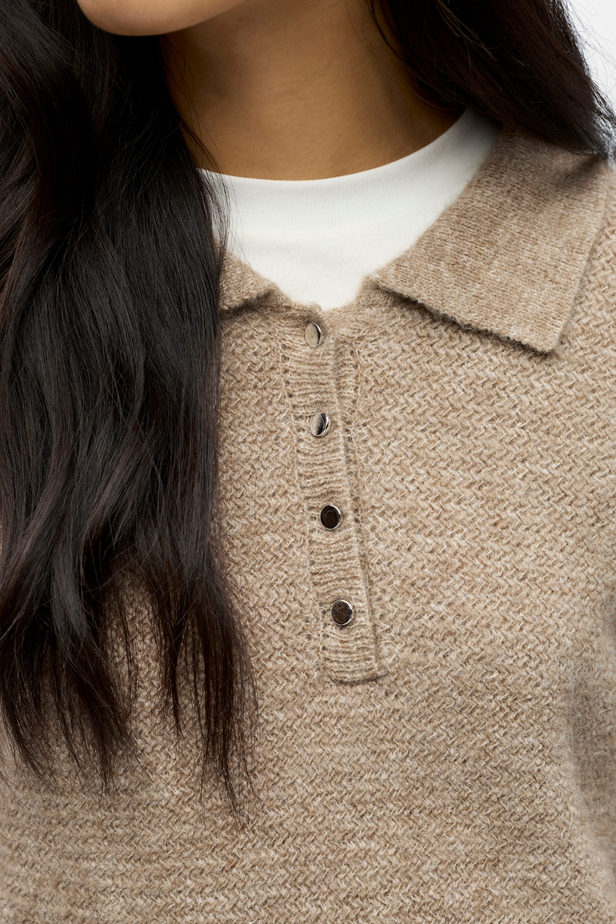 Vår Anine Knit Polo er laget med nøye utvalgte materialer som sikrer både komfort og holdbarhet. Denne pikén er en hyllest til kvalitetsplagg, og kombinerer funksjonalitet med et elegant design. Uansett om du skal til en avslappet lunsj med venner eller et uformelt møte, vil denne plagget fremheve din stil på en diskret men effektiv måte. De subtile nyansene og den rolige fargepaletten, inkludert en vakker beige tone, gjør den lett å kombinere med ulike plagg og tilbehør.